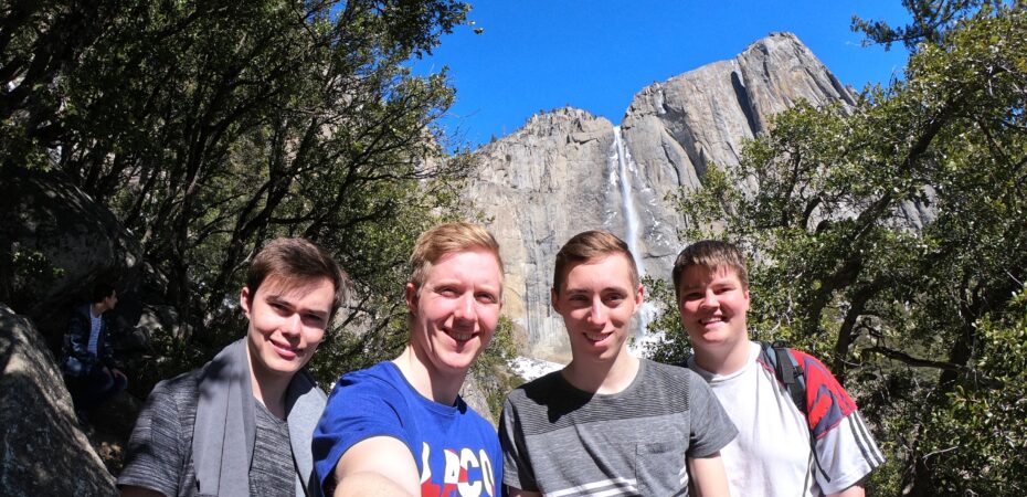 I dag var vi tidligere oppe, mest af alt fordi vi frøs så meget, at det ikke var behageligt at blive liggende i teltet. Vi måtte derfor hurtig i gang med at lave morgenmad. Nicolai og Christian ville have havregrød mens Thomas og Oliver ville have bagels med smøreost. Thomas startede dog med at smage havregrøden, men levnede fordi han mente, havregrøden havde fået for meget salt. Christian spiste op, men mente dog, at Nicolai havde fundet kuren mod pshoraersis pga. grødens saltmængder sammenlignelige med Sortehavet (overdrivelser kan forekomme, red.) Fyldt op med morgenmad begav vi os frygtløs ud på hike-ruten mod Upper Yosemite Falls, ca. 2 miles lang. Vi havde alt det tøj på, vi kunne støve ud af kufferterne, men dette viste sig at være en rigtig dårlig ide, for da vi havde gået i et kvarter, bagte solen ned på os, og vi blev nødt til at smide alt det tøj, vi havde taget på for ikke at fryse ved morgenmaden. Efter det første pitstop begav vi os ufortrødent op mod vandfaldet. Vi havde kun to vandflasker med, og med alt det salt vi havde fået til morgenmaden, var dehydrering en reel risiko, men heldigvis var smeltevandet koldt og smagte godt. Vandfaldet er fantastisk smukt, selvom der var lidt mindre vand i det, end sidste gang Oliver og Christian besøgte det. Turen, der tog halvanden time derop, kunne nu gøres på tre kvarter nedad, hvor frokosten ventede. Frokosten, efterhånden en klassiker, bestod af sandwich med skinke og ost og en tilhørende cola, som vi mente var velfortjent efter de mere end 300 meters højdeforskel, vi havde gået op mod vandfaldet. Efter lidt planlægning ved middagsbordet med input fra nogle af vores nabocampister, besluttede vi os for at gå ud til El Capitan, og derefter videre ud til Bridalveil Fall, en tur på ca. 10 mil, dog i fladt terræn. Det viste sig at blive sværere, end hvad vi havde regnet med, da stien fra El Capitan til Bridalveil Fall pludselig stoppede. Vi kunne heldigvis se vejen, så vi gik ud til denne og fulgte den ud til vandfaldet. Vi havde planlagt at tage en bus hjem fra vandfaldet, da de var gratis, og fordi vi ikke gad at gå mere (måske i omvendt rækkefølge), men det vestligste punkt, som busserne kørte til, var vores lejr, så vi måtte gå den lange vej tilbage. På turen tilbage var der mange væltede træer, og vi stødte ind i samme problem som på sidste sti og måtte derfor følge samme procedure med at gå ud til vejen. Vi var begyndt at få lidt travl, da vi havde aftalt med vores naboer, at vi skulle medbringe brænde til bålet i vores lejr, så vi måtte sætte det lange ben forrest. Vi nåede det, og menuen stod nu på kyllingebryst vendt i karry med det enchilada-sovs, vi havde til overs fra i går samt pasta, ganske fortræffeligt mad. Det sidste af dagen stod på bålhygge til midnat, der endte i en stor klokken tolv raket i form af et par papkasser, der brændte RIGTIG godt. Vi havde lidt putte-vanskeligheder, idet en gruppe fra lejren ved siden af vores var begyndt at diskutere verdens problemer, især hvor trælse kinesere ifølge deres mening er, et knap så velovervejet emne, idet halvdelen af campen var asiatere – det skal dog siges, at de havde fået lidt indenbords.